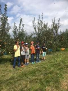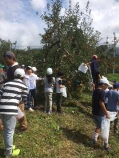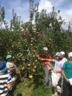 農園にはりんごの木にたくさんのりんごが実っていました。1人1個なのでどれにしようか、探しまわっていました。
