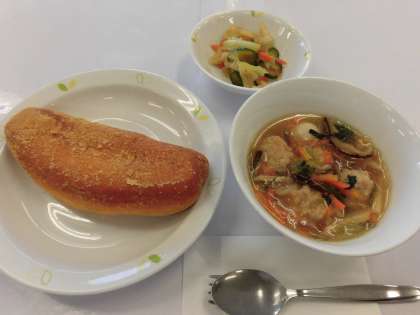 【献立】あげパン・肉団子入り春雨スープ・野菜の中華味・牛乳