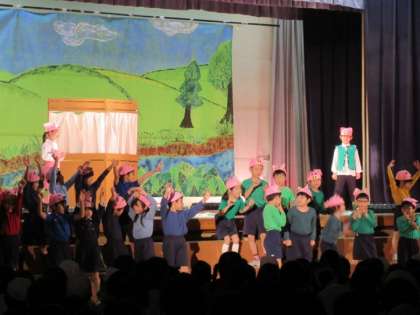 トップバッターは1年生の「にんじんばたけのパピプペポ」。昨日の発表で自信をつけた1年生が学校生活で身に付けた力を発揮して、みんなで一つの劇を作り上げることができました。
