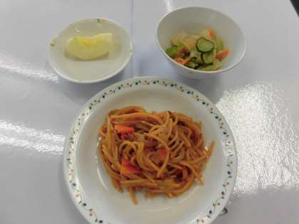 【献立】スパゲティーナポリタン・野菜のイタリアンドレッシングかけ・