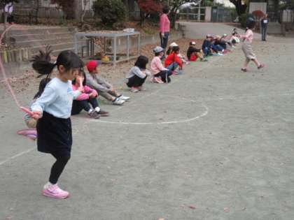 そのあとを子どもたちは自分がチャレンジしたい技を練習しました。学校では体育の時間等を使ってなわとびの技の練習に取り組みながら体を鍛えていきます。