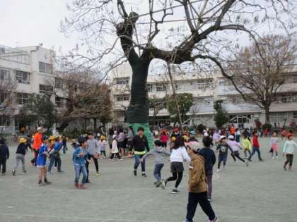 太陽が隠れ、朝から寒い日ですが、中休みには大勢の子どもたちが外に出て、友達と元気よく遊んでいます。子どもたちのエネルギーをすごいです。