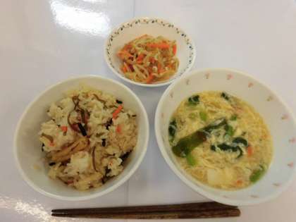 【献立】磯ごはん・かきたま汁・もやしのごま醤油かけ・牛乳