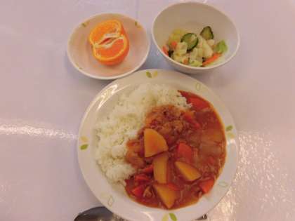 【献立】ハッシュドポークライス・キャベツサラダ・ぽんかん・牛乳