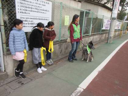 今朝、学び舎のふれあいあいさつ運動を行いました。深中の生徒たちとともに深小の子どもたちが自分たちで作ったたすきをかけて正門に立ってあいさつをしました。深沢わんわんパトロール隊のわんちゃんも子どもたちを迎えてくれました。