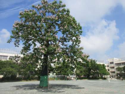 朝から汗ばむような陽気です。校庭の桐の木は少しばかり花びらを散らし始めていますが、まだ多くの花を咲かせています。