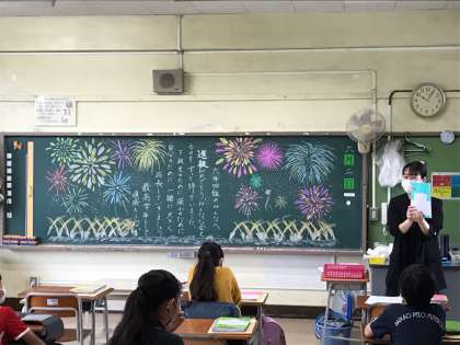 2クラスご紹介します。校内を回って、新しい校内での生活を確認するクラス、黒板に昨夜の応援の花火を再現したクラスなど、6年生全体的に落ち着いたスタートを切りました。