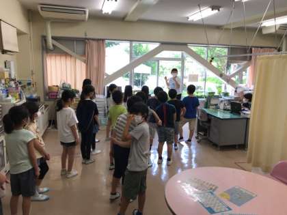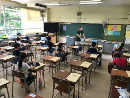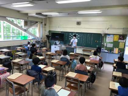 学校内を探検したり、配布物に名前を書いたり。こちらも静かに取り組んでいました。