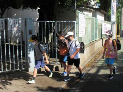 朝から強い日差しの中ですが、子どもたちは元気な姿を見せてくれています。