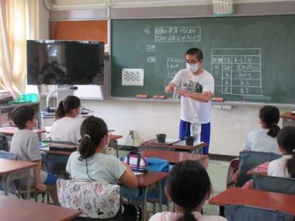 今日の1時間目。5年1組は理科で植物の発芽の学習。本来ならグループごとに実験をするのですが、今回は教師実験。先生の実験の様子を真剣に見ていました。2組は国語。5年生らしく発言しながら物語の読みを進めていました。3組は算数。先生の話をしっかりと聞き、よく考えながら学習していました。どのクラスも落ち着いて学習しています。