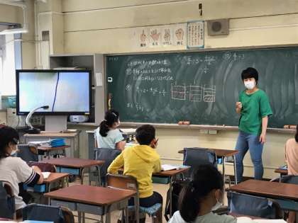 1組と2組は算数。分数÷整数の計算の仕方を考えます。