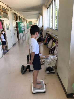 定期健康診断がようやく始まりました。身長と体重の計測は、養護教諭が教室前まで出向いて実施しています。