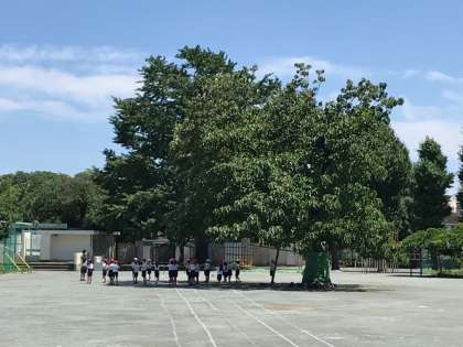 木陰で広がって体育ができる、深沢小学校は素敵です。
