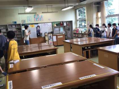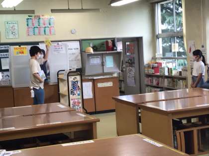 感染拡大防止のため、当分の間、図書室での閲覧はできません。本の貸し借りの方法についての説明を聞きました。