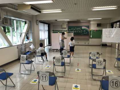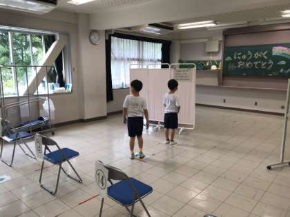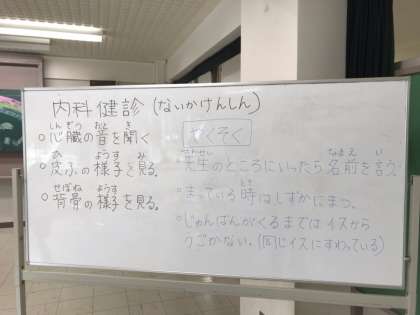 視聴覚室で実施しました。少人数で、距離を保ちながらの健診です。