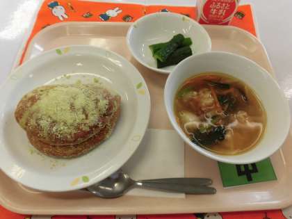 【献立】ケロケロあげパン・肉団子入り春雨スープ・スティックきゅうり・牛乳