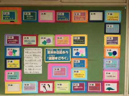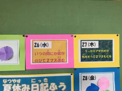 今年は短くなってしまった夏休みですが、それにちなんだすごろくが掲示されています。よくよく眺めてみると、楽しいですよ。