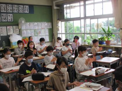 音楽教員が子どもたちをうまく盛り上げて、みんなでリズムを楽しんでいました。
