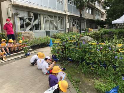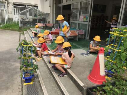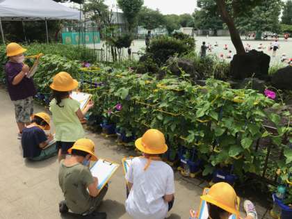 久しぶりの晴れ。アサガオが大分咲いています。その様子を観察しています。