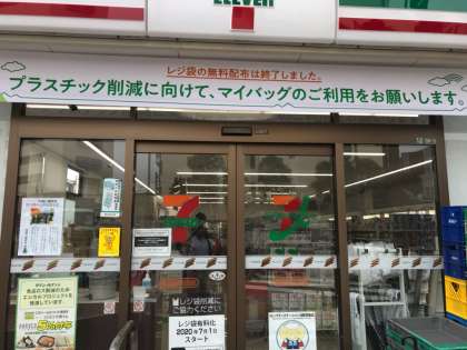 しゃしんは、あるコンビニのかんばんです。7がつから、レジぶくろがゆうりょうになりました。さて、そのりゆうはなんでしょうか?