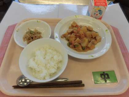 【献立】ごはん・肉じゃがうま煮・ごま酢かけ・牛乳