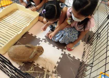 生活科「いきものとなかよし」の学習です。今日は、深沢小学校で飼育しているうさぎのマロンとふれあったり、
