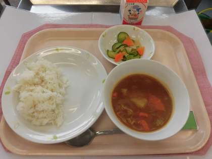 【献立】ごはん・カレー・シャキシャキ野菜・牛乳