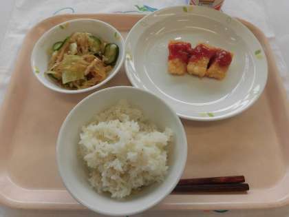 【献立】麦ごはん・いかのチリソース・春雨サラダ・牛乳