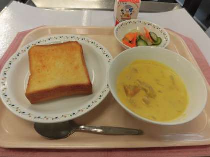 【献立】ガーリックトースト・パンプキンシチュー・ピクルス・牛乳