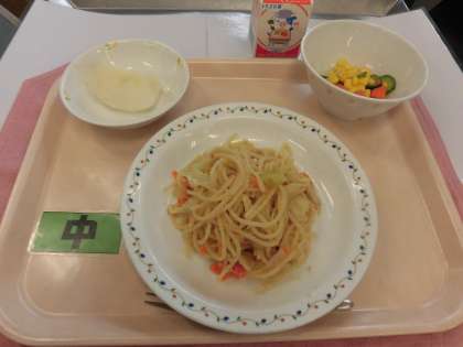 【献立】キャベツとツナのスパゲティー・トロピカルサラダ・牛乳