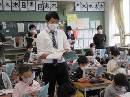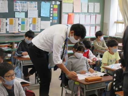 教材文を使って正直になることを大切をみんなで考えていました。明るく元気いっぱいで活気のある授業でした。