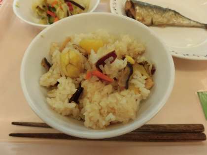 【献立】秋の香りごはん・さんまの塩焼き・キャベツの塩昆布かけ・牛乳