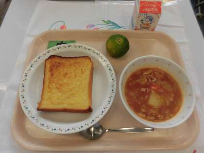【献立】フレンチトースト・ボルシチ・みかん・牛乳