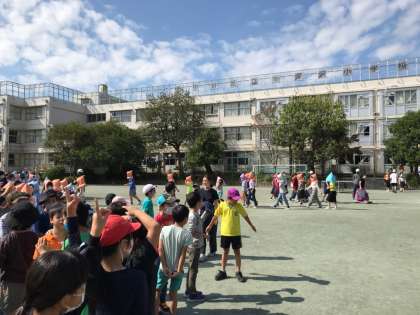 地震を想定して、今年度初めての校庭への避難をしました。休み時間だったのですが、スムーズに避難を終えることができました。
