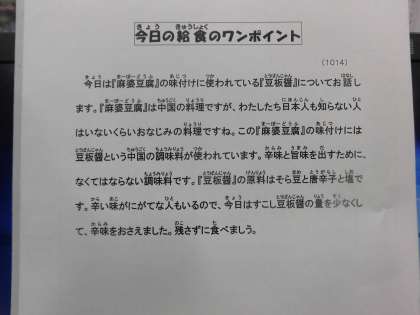 【献立】ごはん・麻婆豆腐・中華サラダ・牛乳