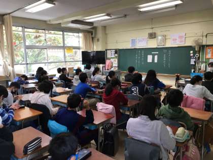 急に冷え込むようになりました。今朝の校長先生のお話は、中学生向けの教科日本語の教科書に取り上げられている、日野原重明さんの文章に基づく内容でした。静かに放送を聴いている6年生の姿が印象的でした。