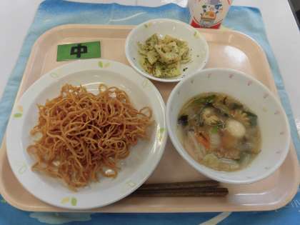 【献立】セルフあんかけそば・フライドポテト・牛乳