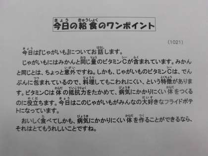 10月21日(水)の給食