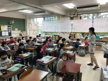 「虫の声」を歌っています。マスクごしでも、いい歌声です。
