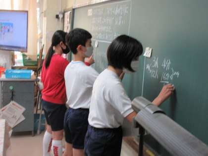 子どもたちは比例の活用について考え合いました。自分の考えをオープンにし、友達の考えを尊重しながら学ぶ姿が見られました。