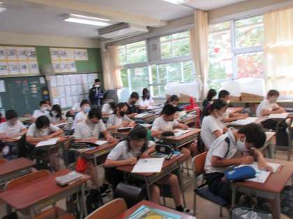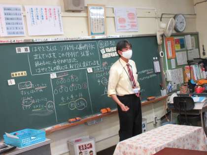本校の指導教諭の師範授業の公開授業を開催しました。区内外の小中学校から10名の先生が参加をしました。算数の比例のまとめの学習です。