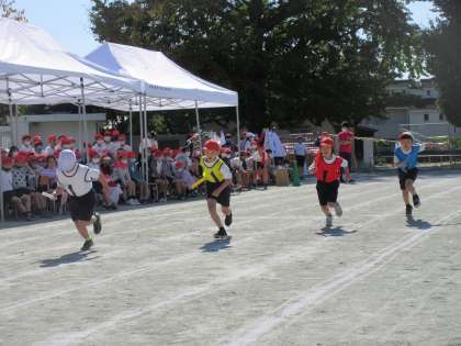 午前の部最後は1,3,5年生の選手によるリレーです。この組み合わせは初めてですが、子どもたちはチームを作り、力強い走りを見せてくれました。