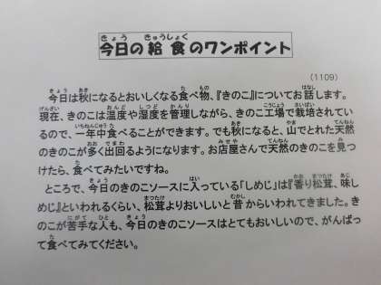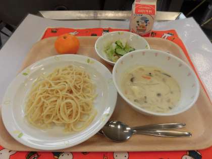 【献立】スパゲティー・きのこソース・キャベツサラダ・みかん・牛乳