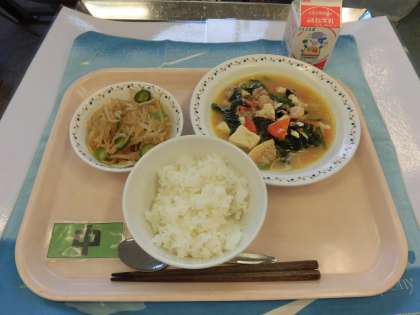 【献立】ごはん・豆腐のうま煮・春雨サラダ・牛乳