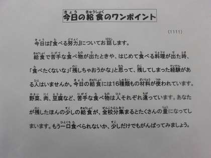 11月11日(水)の給食