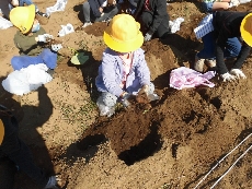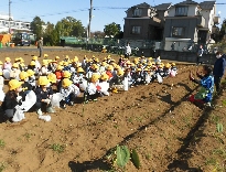 今日は生活科の学習で、秋山農園にさといも掘りに行きました。
