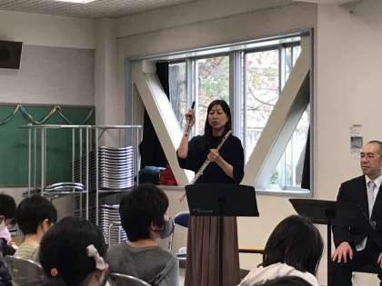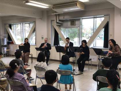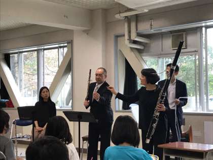 アンジェミュジークの皆さんをお招きして、木管五重奏を楽しみました。各楽器の仕組みについても丁寧な説明がありました。