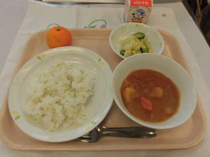 【献立】ごはん・カレー・はくさいとコーンのサラダ・牛乳