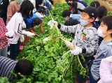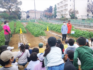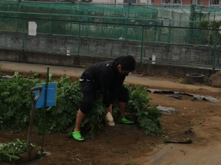 キャーキャー言いながら(笑)大根を一生懸命抜いていました。