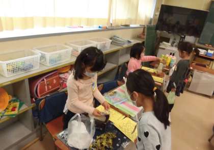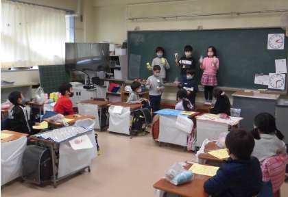 1年生の生活科では、どんぐりやまつぼっくりなどの秋の落とし物を使って、おもちゃやアクセサリー、ゲームコーナーなどを作り、お店やさんごっこを楽しみました。